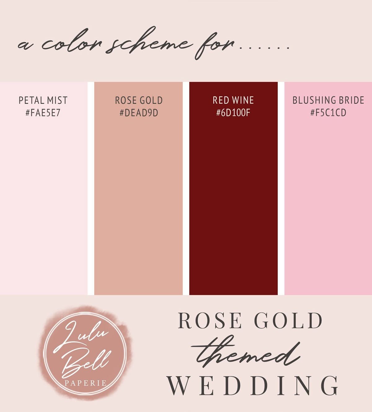 Nous utiliserons les couleurs suivantes pour le thème du mariage, nous vous recommandons de vous habiller dans ces couleurs.