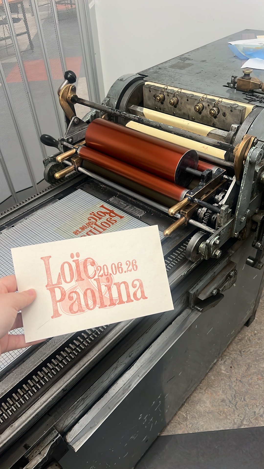 Les cartes d’invitation ont été conçues à la main avec une presse à papier. Vous pouvez voir le processus de fabrication avec cette petite vidéo.